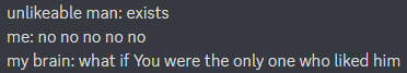 and he has infested my brain like a fungus. God I hate him so so much