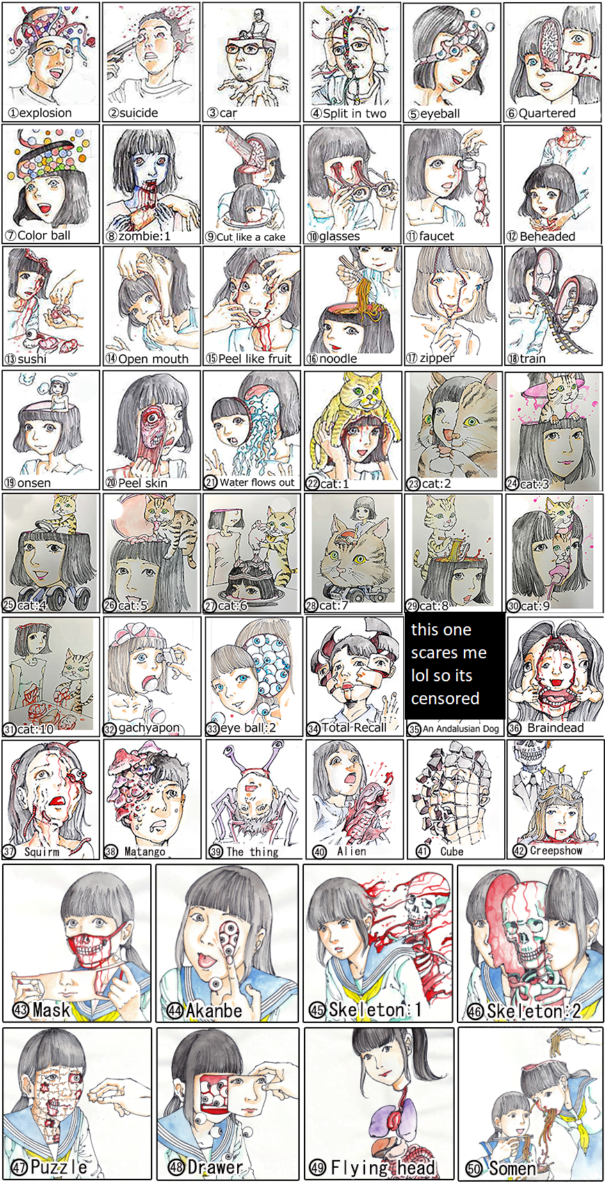 fifty (!!) possible grotesque fates that can befall you, ranging from