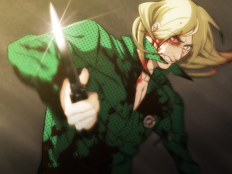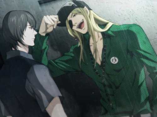 Zenya has a hair-trigger temper, and he's also the only one who knows about Youji's condition. He's extremely interested in it, to be precise, and sets his sights on Youji much like an animal sets its sights on its prey. Zenya is operating on a higher narrative importance than any other character, it seems - the one doomed to know the truth, and to realize the stupidity of it all, accounting for his absurd and potentially nihilistic behavior. It's very hard to tell what his actual motivations are, but he believes that he is the only one worthy of Youji's attention and the strange things happening inside his body.