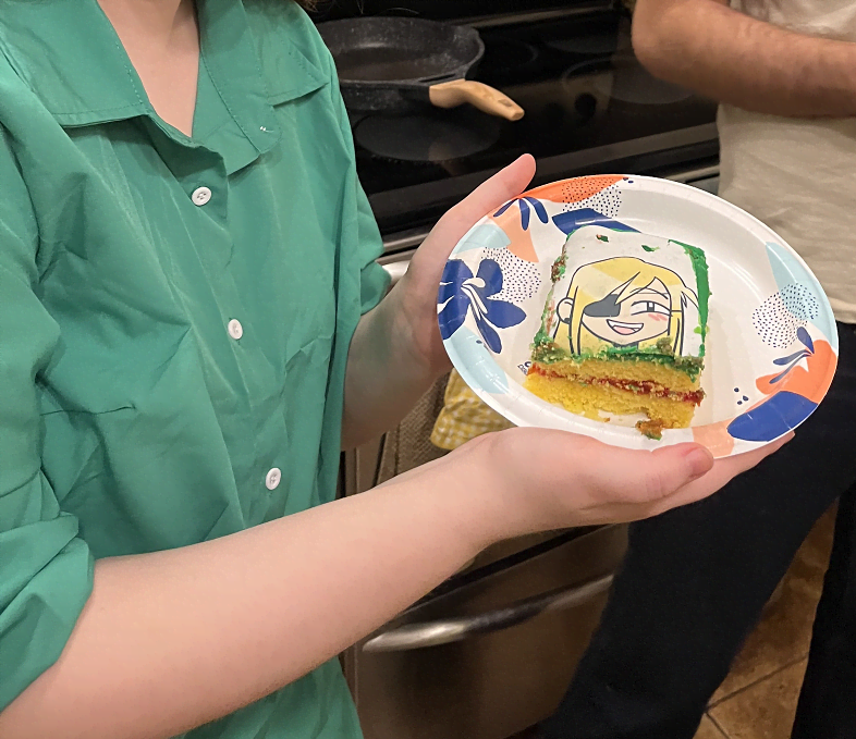 I was a little nervous about how it would turn out, but it was so much fun!! I prepared some dishes in advance - devilled eggs (since Zenya loves eggs) and red Jello (since it looks gross and slimy and red!!) - and also made a huge charcuterie spread the day-of. I also got a custom cake printed with the image shown above in the invite!! My friends provided yummy turkey meatballs and also planned to make burgers, but we had a lot more food than we expected, so we ended up just snacking on the appetizers the whole time.