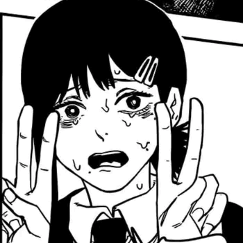 The other thing that makes Kobeni different is that I feel bad about how much I love seeing her in emotional turmoil. I think she's hilarious in the absolute saddest way possible, and the way she's treated in canon doesn't bother me besides a general sense of 'damn, they didn't have to do her like that lmfao'. She fits into the vibe of the universe so perfectly and the other women in Chainsaw Man are all equally as deranged and maladjusted as her, so she doesn't feel like a weird character that exists for creepy torture porn reasons, but lots of fanart of her makes me uncomfortable because it DOES feel like that. I am extremely picky about how people talk about her/treat her, which changes her from 'funny loser character that I like seeing trip and cry' to 'woman who is put into tense and uncomfortable situations for the pleasure of freaks who like seeing women in pain', and no part of that is enjoyable to me. It kind of ruins the whole reason that I like her. So I guess my verdict on Kobeni is that she's totally my type and I am actually really into her, but I feel too guilty to actually enjoy her because a lot of the content I see regarding her makes me feel yucky. Maybe watching her in the anime will help me loosen up and spend more time thinking about her so I can get over this mental roadblock and just enjoy my absolute loser of a girlfriend.