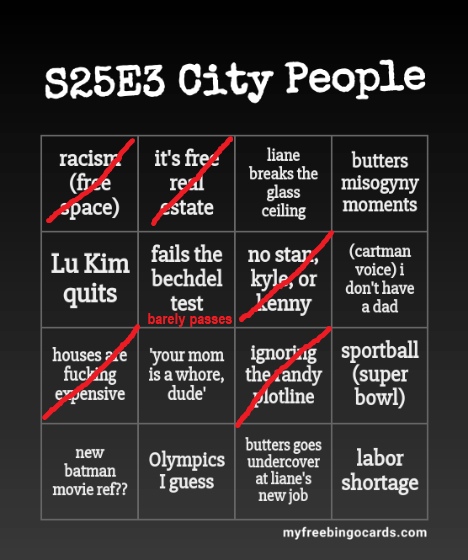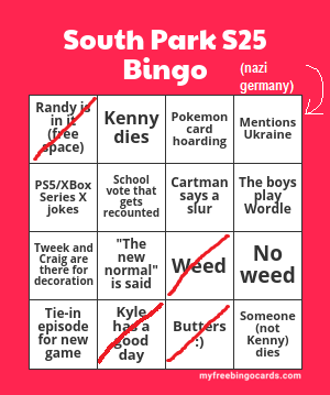 Prior to the title drop, I made a S25 premiere bingo card with random
